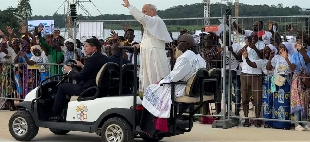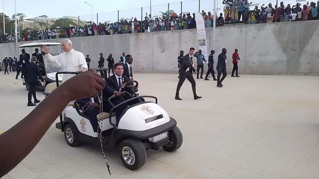 Antes do início da recitação do Santo Terço, o Bispo da Diocese de Viana, Dom Emílio Sumbelelo, dirigiu palavras de acolhimento ao Santo Padre, num tom profundamente espiritual e próximo do coração do povo. Falou da alegria imensa de receber o Papa e recordou que todos ali presentes — jovens, movimentos, famílias — se reuniam como Igreja viva, para saudar “o pai e pastor” que traz no seu coração todo o povo de Deus.