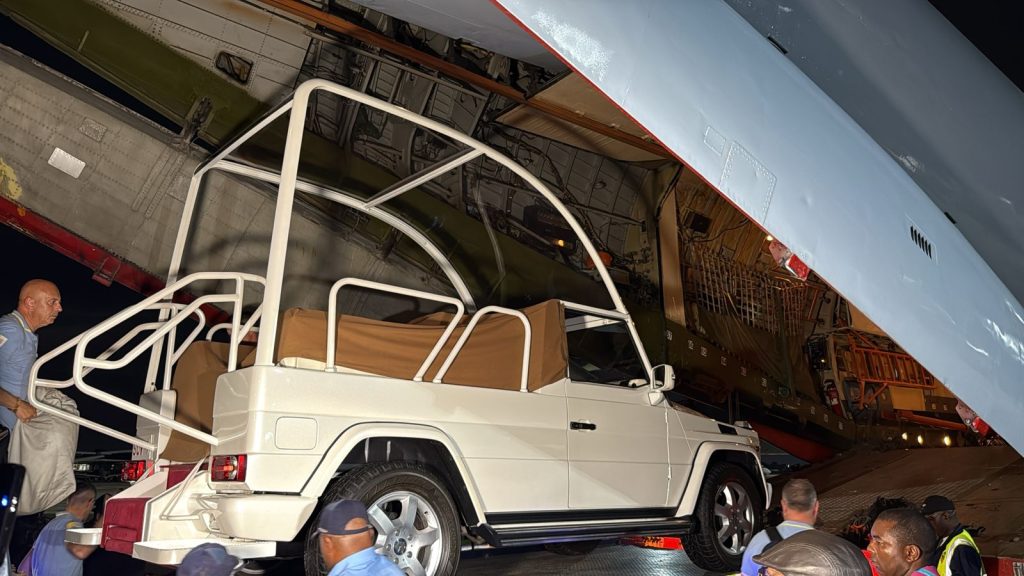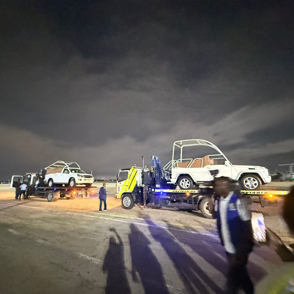 Os veículos chegaram ao território nacional por via aérea, a bordo de uma aeronave de carga da Força Aérea Nacional (FAN), no quadro de uma operação coordenada entre as autoridades do Estado angolano e a Igreja Católica, com vista a garantir as melhores condições de mobilidade, segurança e proximidade do Santo Padre ao longo da sua agenda pastoral em Luanda, Icolo e Bengo e Lunda-Sul.